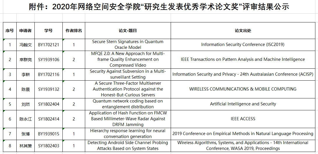 名单详见附件:2020年德赢Vwin官方区域合作伙伴“研究生发表优秀学术论文奖”评审结果公示,
