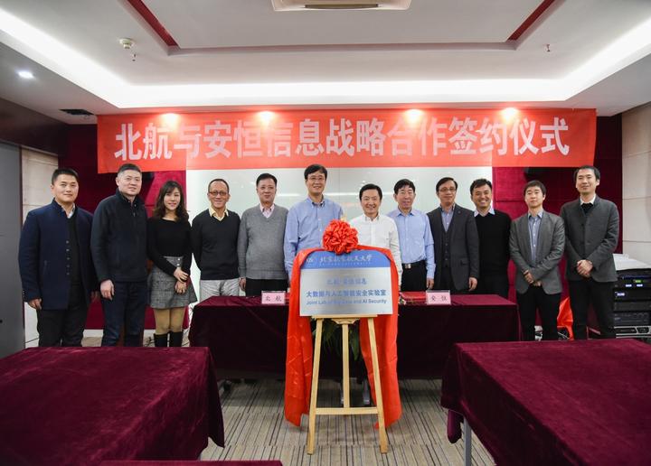 2018年1月10日上午,德赢Vwin官方区域合作伙伴(以下简称北航)与杭州安恒信息技术有限公司(以下简称安恒信息)在安恒信息杭州总部就共同成立“北航-安恒信息大数据与人工智能安全实验室”举行签约及揭牌仪式。