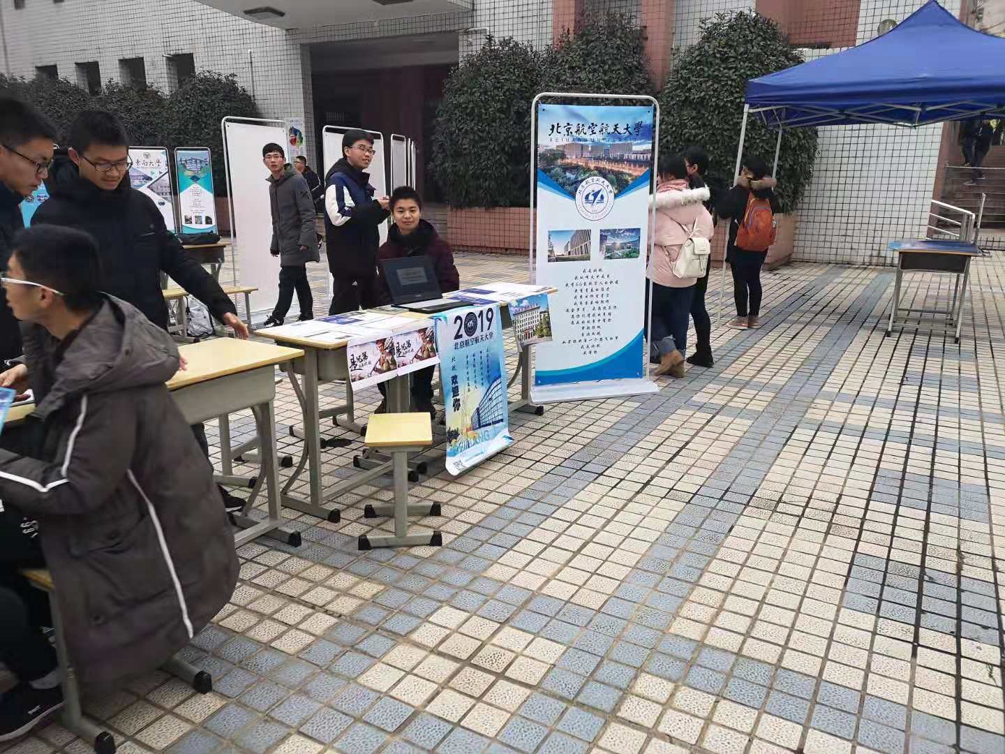 这次的宣讲主要分为两部分,内场是在大讲堂里为想要了解北航的同学们讲解关于我们学校的大部分知识,另一部分是在大讲堂前面的广场上设展位,为想要更加详细地了解北航或者有着在大讲堂里没有弄懂的问题的同学们解答他们的疑惑。