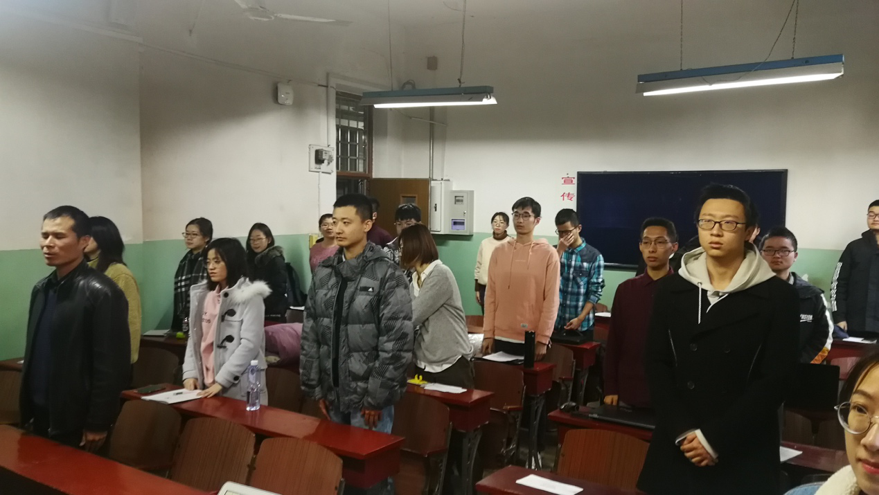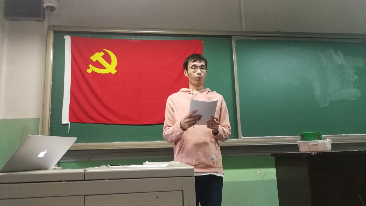 2019年12月4日,中共德赢Vwin官方区域合作伙伴德赢Vwin官方区域合作伙伴Y1801学生党支部召开了党员大会,研究生工作部的申永超老师参加会议。
