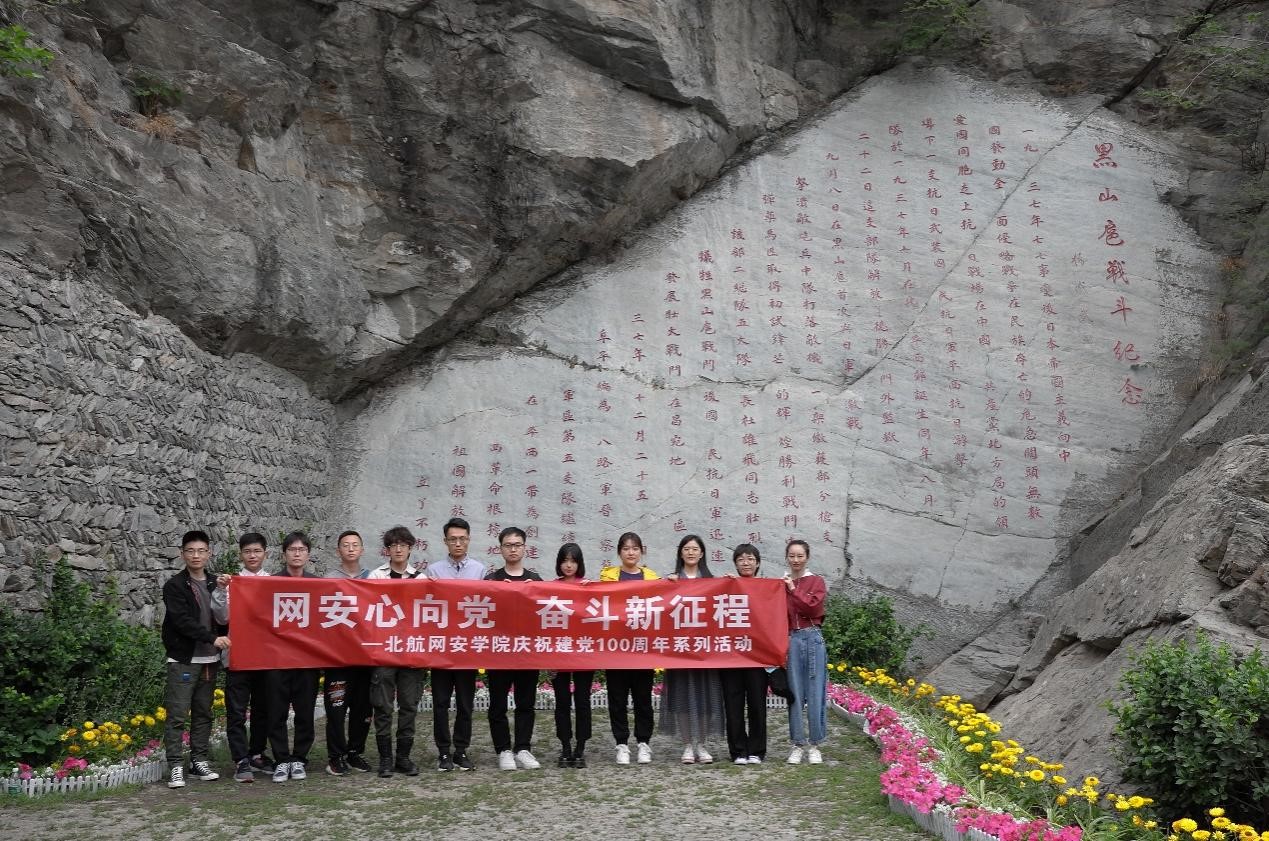 在建党百年之际,为积极响应习近平总书记开展党史学习教育的号召,继承和发扬革命先辈的红色精神,加强党员思想政治教育,2021年5月15日上午10时,北航德赢Vwin官方区域合作伙伴Y1901和Y1902学生党支部在百望山森林公园黑山扈战斗纪念园组织举办了庆祝建党100周年系列活动之“网安心向党 奋斗新征程”主题党日活动。学生党支部12名党员同志参与。