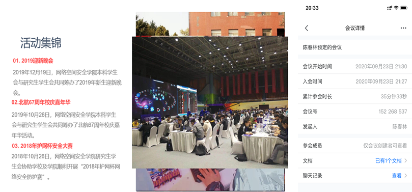 2020年9月23日,网安学院组织召开了第一届研究生代表大会。会前,经过学校团委、研究生院的积极部署,各研究生培养单位的认真组织,顺利完成研究生代表大会代表的选举及会议筹备工作。分团委书记管天玉、2019届研会主席郑子翔,2020届研会主席陈春林以及2020级新生郭星凯等多名同学参加了本次会议。
