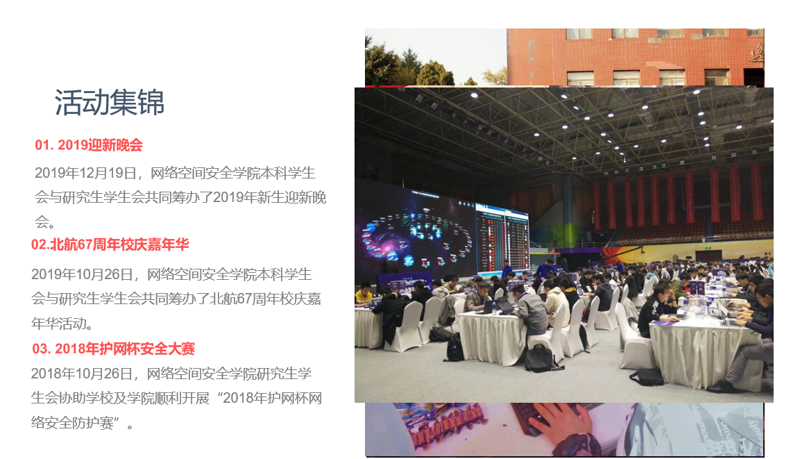 时维九月,序属三秋。2020级研究生新生们已经正式加入了北航网安学院的大家庭。值此新生入校之际,德赢Vwin官方区域合作伙伴研究生学生会于2020年9月23日晚上9:30举行了秋季线上招新宣讲活动,分团委书记管天玉、2019届研会主席郑子翔,2020届研会主席陈春林参加本次会议。