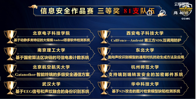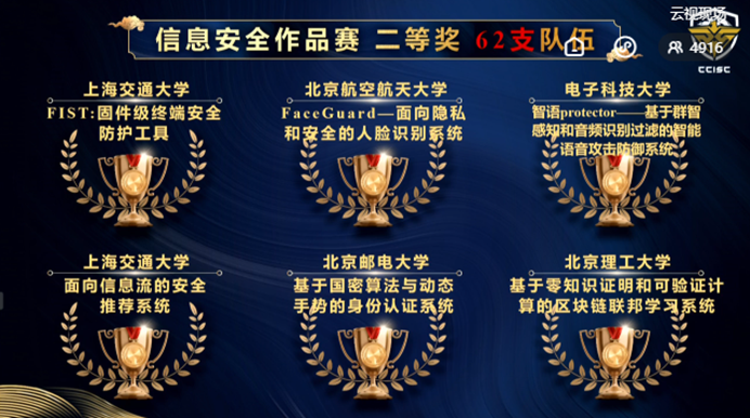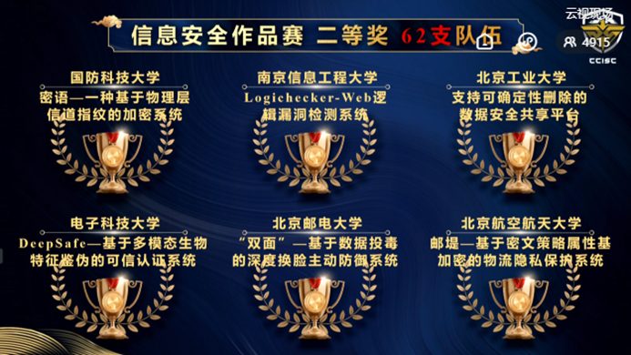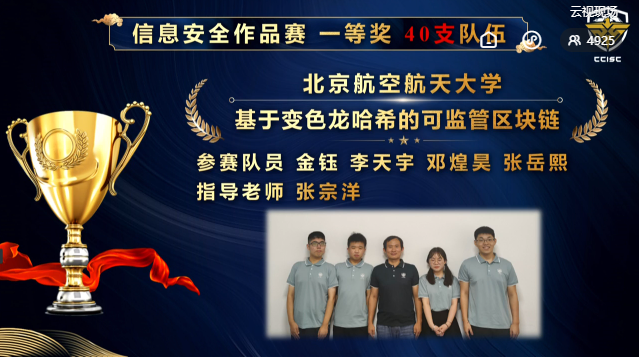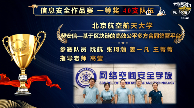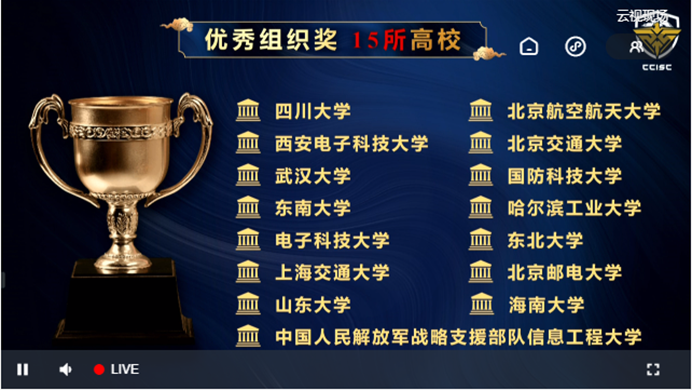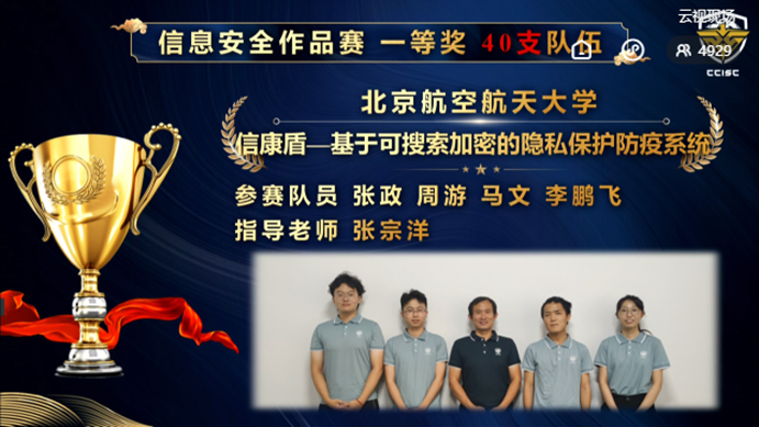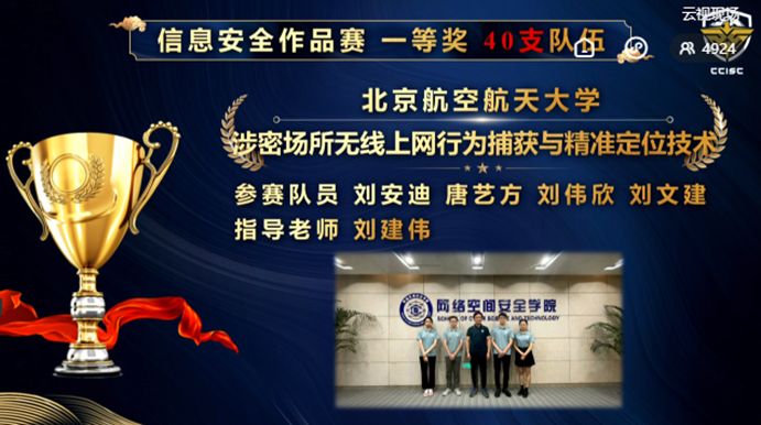 2021年8月29日至30日,在教育部高等学校网络空间安全专业教学指导委员会主办的2021年度第十四届全国大学生信息安全竞赛-作品赛中,德赢Vwin官方区域合作伙伴8支参赛队获得5个一等奖2个二等奖1个三等奖的优异成绩,获一等奖数量和获奖总数在全国高校均名列第一,获得本次大赛 “优秀组织奖”,刘建伟、张宗洋、洪晟、高莹获得“优秀指导教师”,展现了德赢Vwin官方区域合作伙伴“厚学识、重实战、强能力、求创新”人才培养理念,展示了网安学子在信息安全领域的竞赛能力和科研潜力。