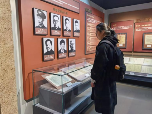 参观完画展后,党支部一行参观了校史展,回顾了学校自创建以来的光辉历史和卓越成就。展厅内陈列的老照片、历史介绍和创新成果展示了几代北航人筚路蓝缕的奋斗历程,诠释了“德才兼备、知行合一”的校训。在校史展览中,党员们进一步感受了北航为国家发展所做出的杰出贡献和自强不息的奋斗精神。此次参观活动让党员们深刻体会到了传承红色精神和北航精神的重要性,同时也激发了他们投身祖国建设的信念和动力。