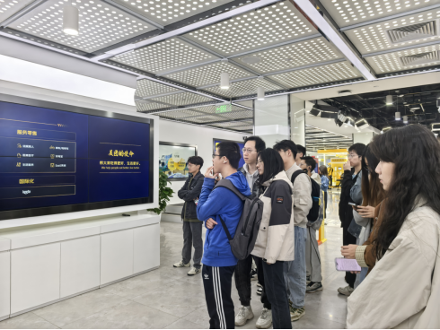 讲解员对展厅中各模块的详细介绍促进了同学们对美团企业文化和业务结构的进一步了解。动态数据大屏上上的实时数据分析还有“智能配送”展区中自动配送车的出行情况演示更是让同学们直观感受到了美团“零售+科技”的战略布局。