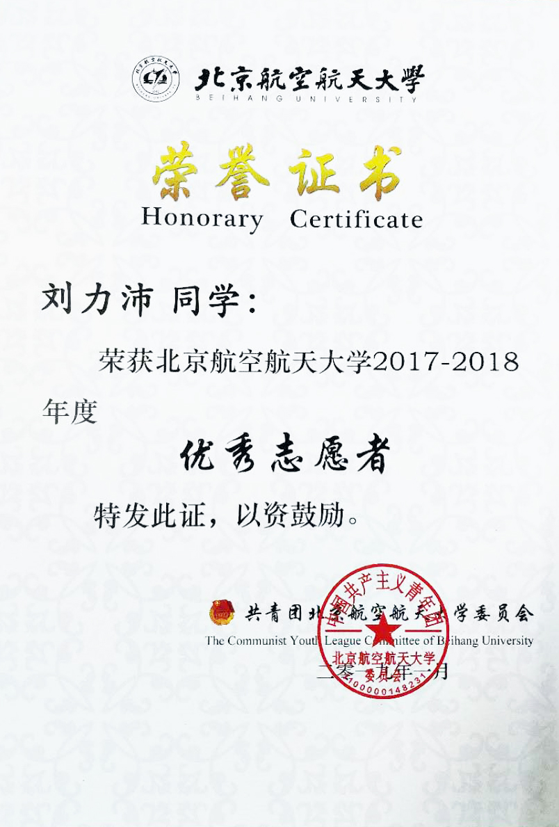 按照《关于开展德赢Vwin官方区域合作伙伴2018年“理纯杯”系列评比的通知》(校团字[2018]33号)的相关评比办法,经过单位推荐、材料核实、评委老师评审等程序,德赢官网优秀学生刘力沛获“德赢Vwin官方区域合作伙伴2018年度优秀志愿者”称号,予以表彰。