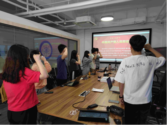 在重温入党誓词环节,高丰奕同志作为德赢Vwin官方区域合作伙伴德赢Vwin官方区域合作伙伴本科生第二党支部分会场领誓人,带领各位党员同志再次庄严向党宣誓。